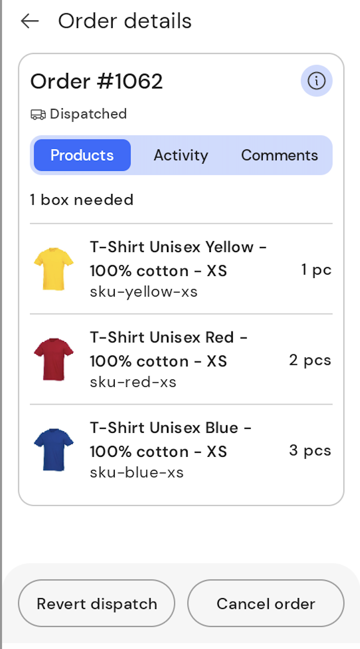 For easier management of refused/returned parcels, the mobile app allows automatic order cancellation in Shopify, along with the corresponding invoice refund.