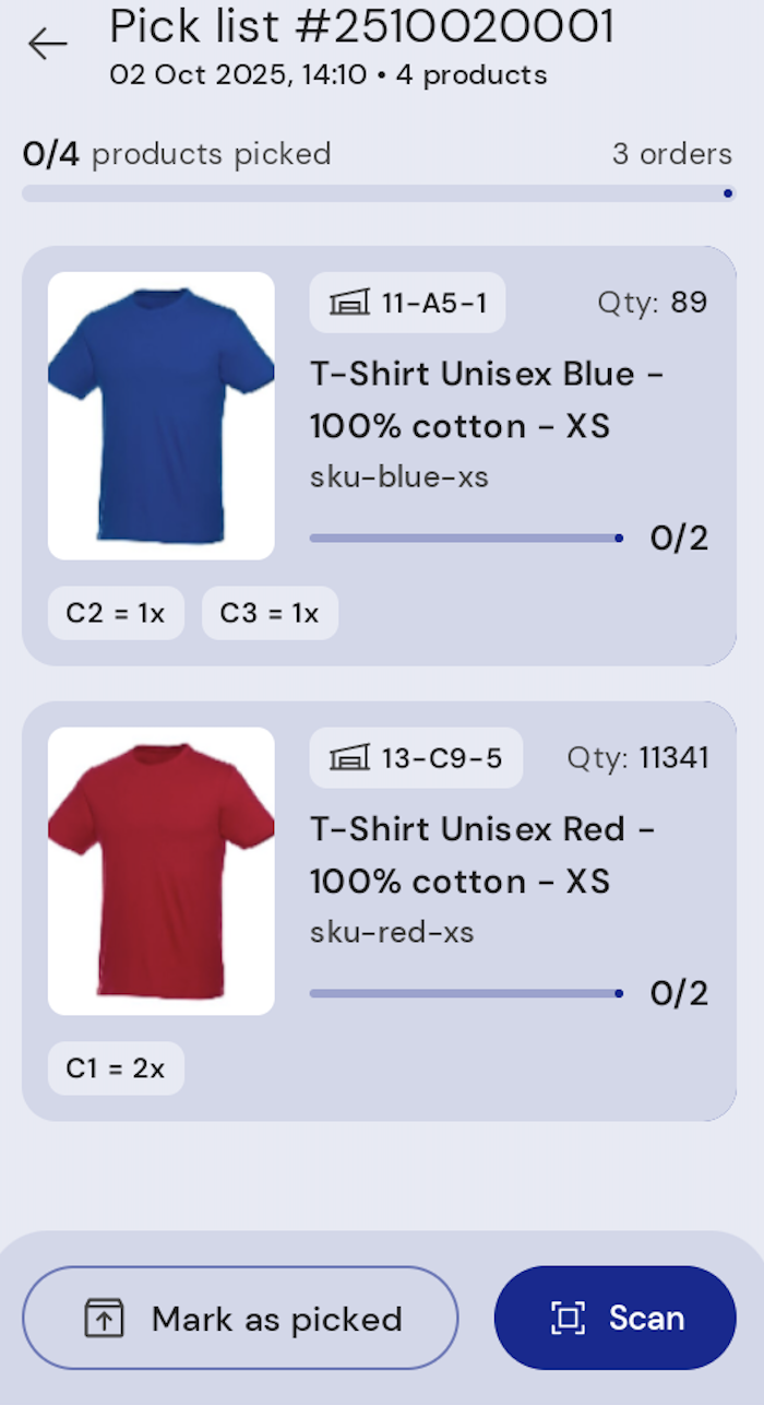 Step 4: Scan the products or mark them manually while picking