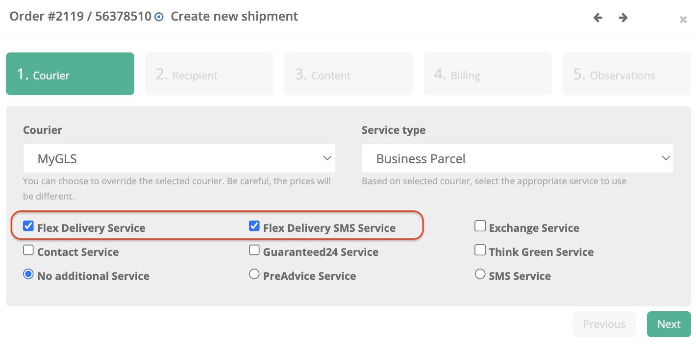 It is recommended to adjust the service name so that it matches the courier service name used in Shopify. This allows automatic selection based on the courier chosen by the customer in the shipping document generation popup.
