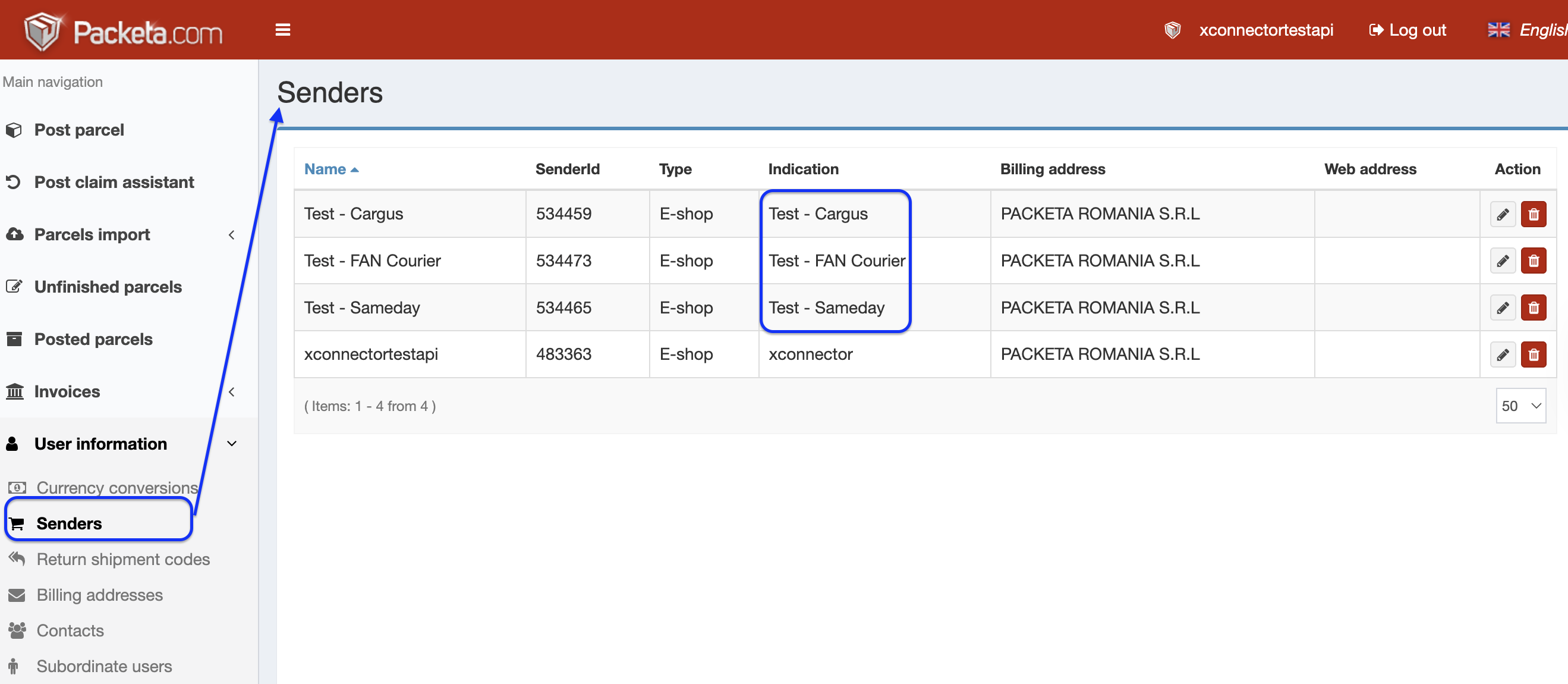 * Sender = Packeta - Senders - Indication - here are all your activated Senders