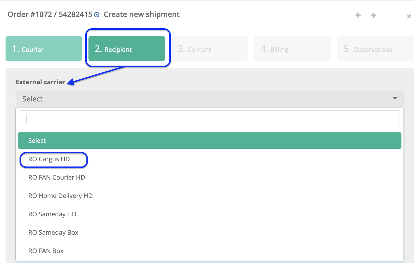 Step: Courier – select the Packetery connector RO Sameday Box (you do not need to manually select the External carrier).