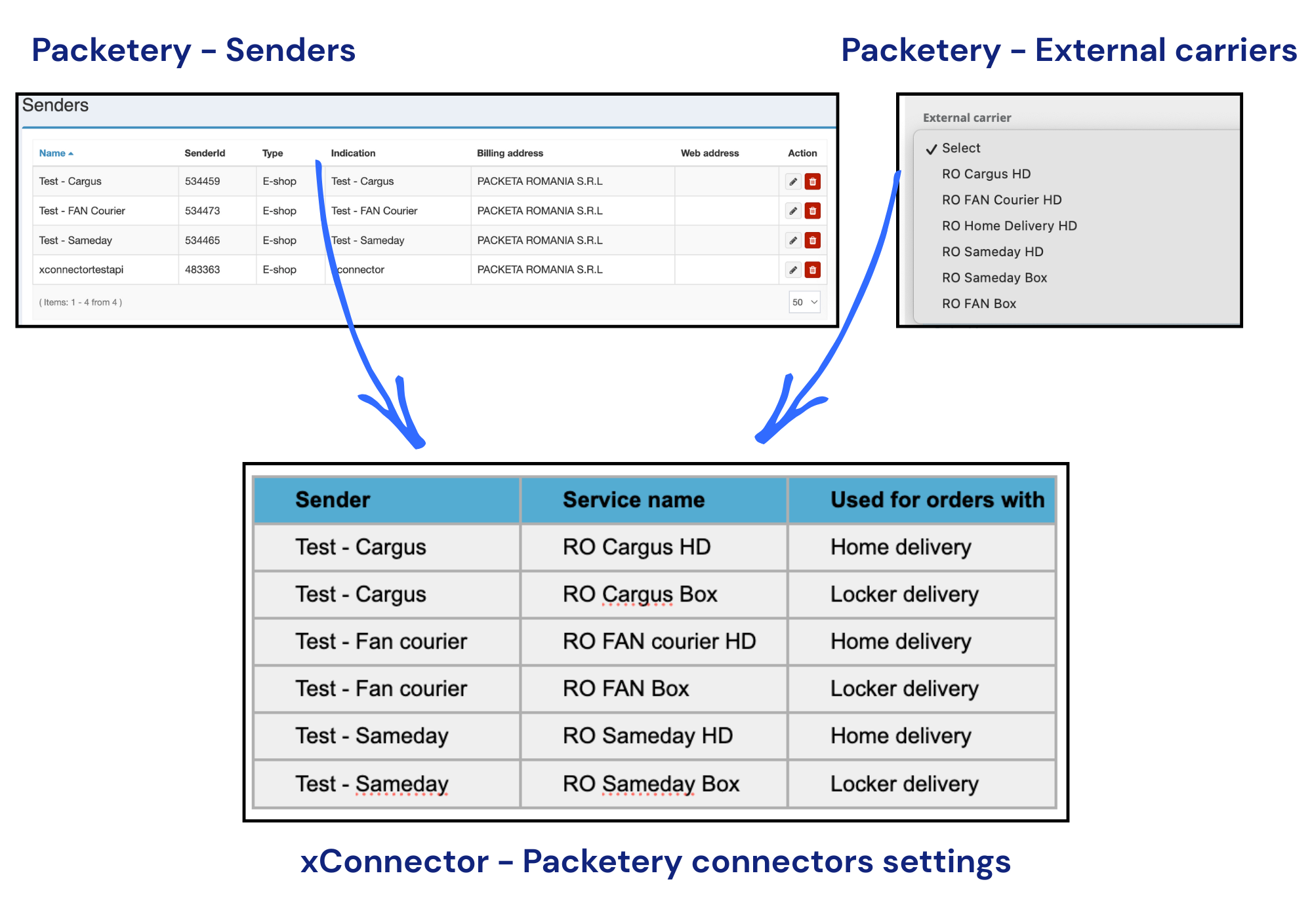 Example: RO Sameday HD and RO Sameday BoxHow to connect the Packetery service in xConnector?