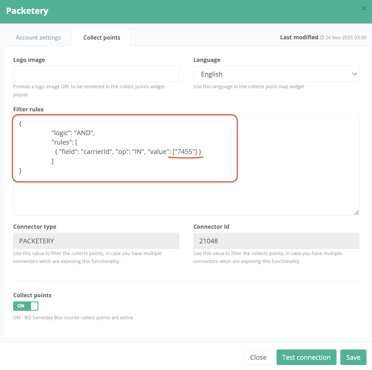 Go to xConnector → Profile → Connected services → the Packetery connector you want to display on the map → Collect points → Filter rules