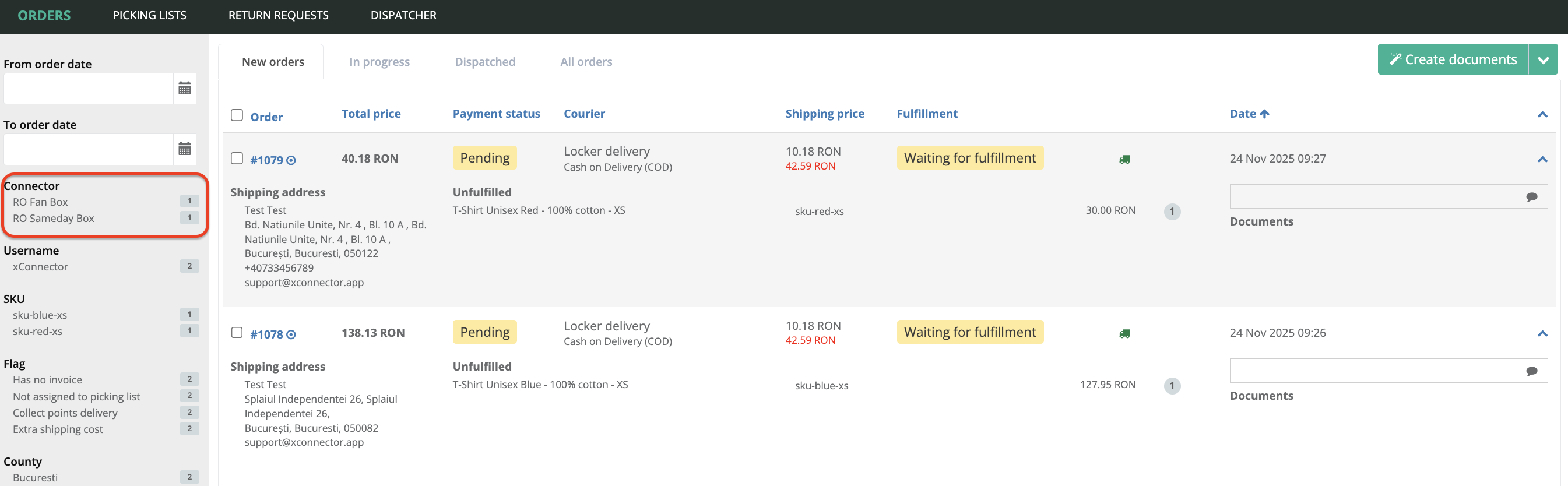 In xConnector, you can filter orders based on the lockers selected in the orders, and then you know exactly which connector is suitable for them.