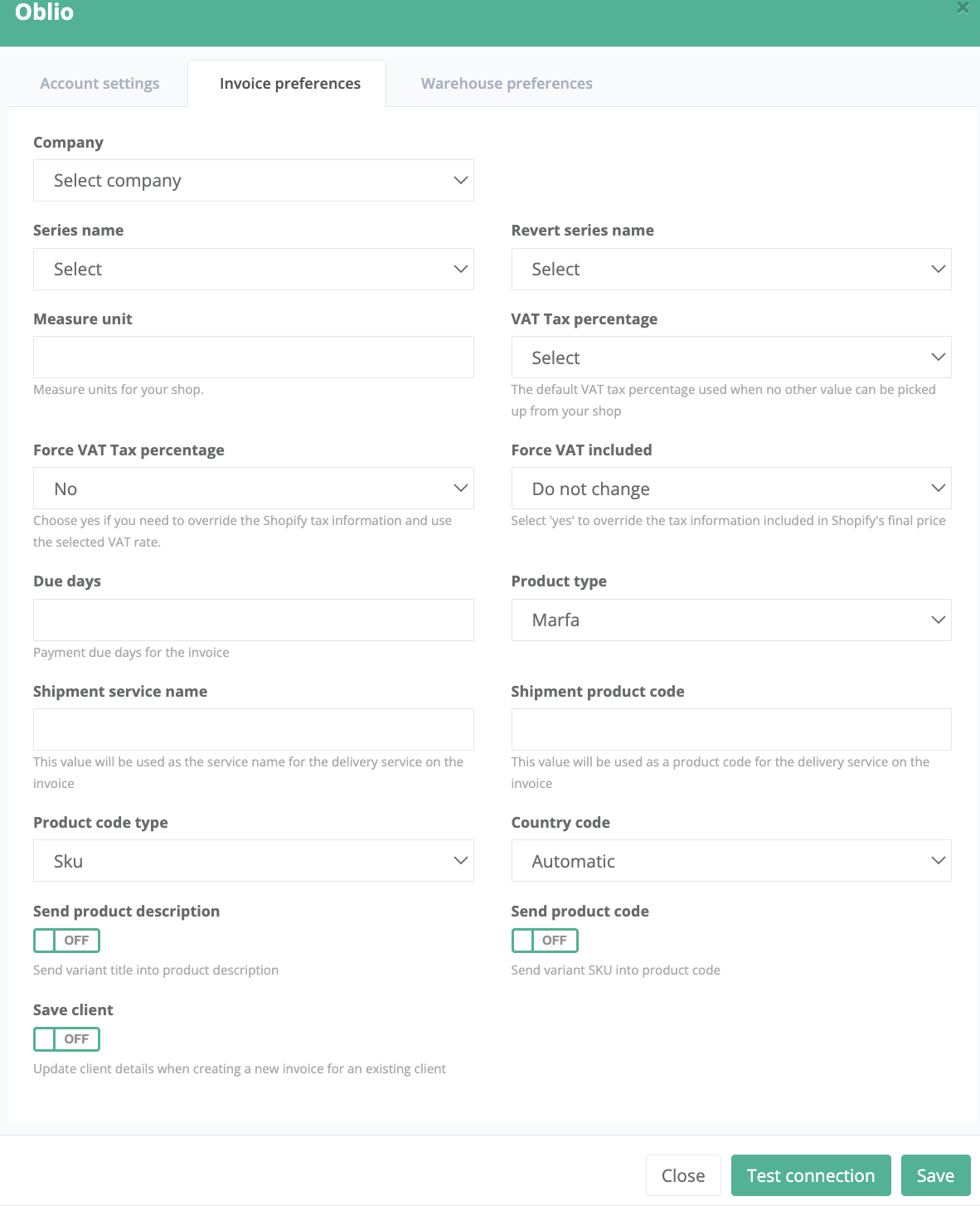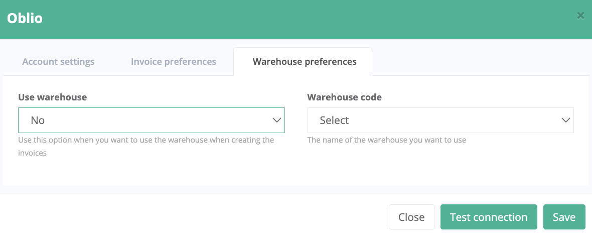 Warehouse code - Selecteaza gestiunea definita in platforma Oblio (optional).