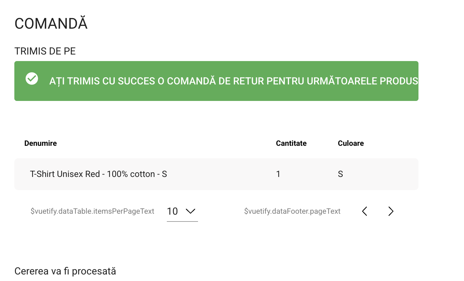 Pas 4: Confirmarea cererii de retur (clientul primeste o notificare pe email dar si responsabilul de procesarea retururilor)