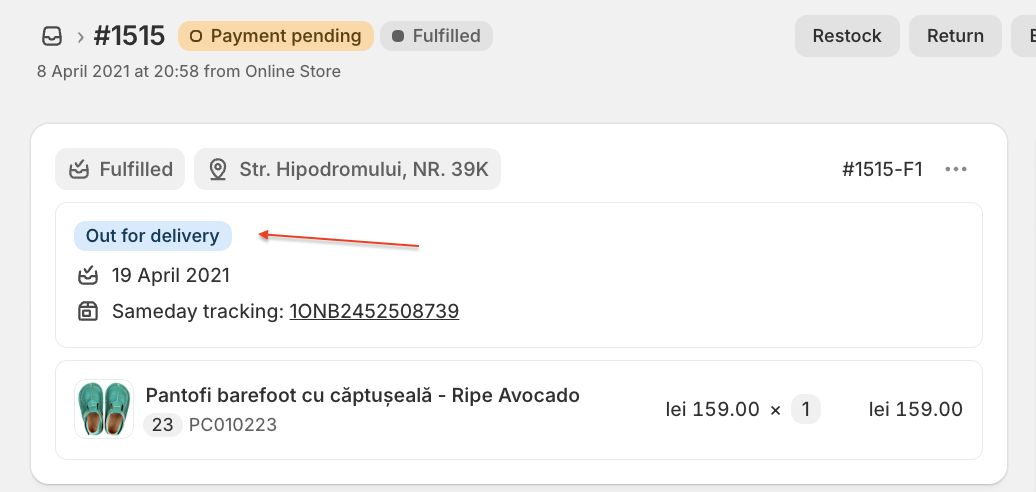 To view the delivery status of an order in Shopify: