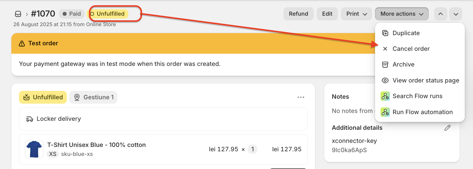 Step 2: Access the Shopify platform and manually cancel the respective order.