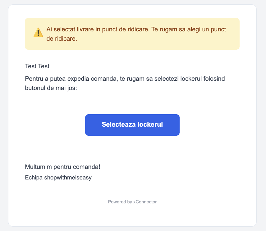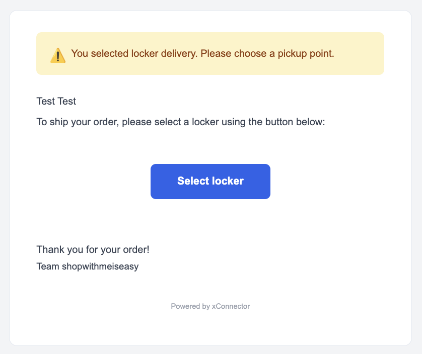 - The email includes a direct link to the Order Status Page where the customer can select a locker