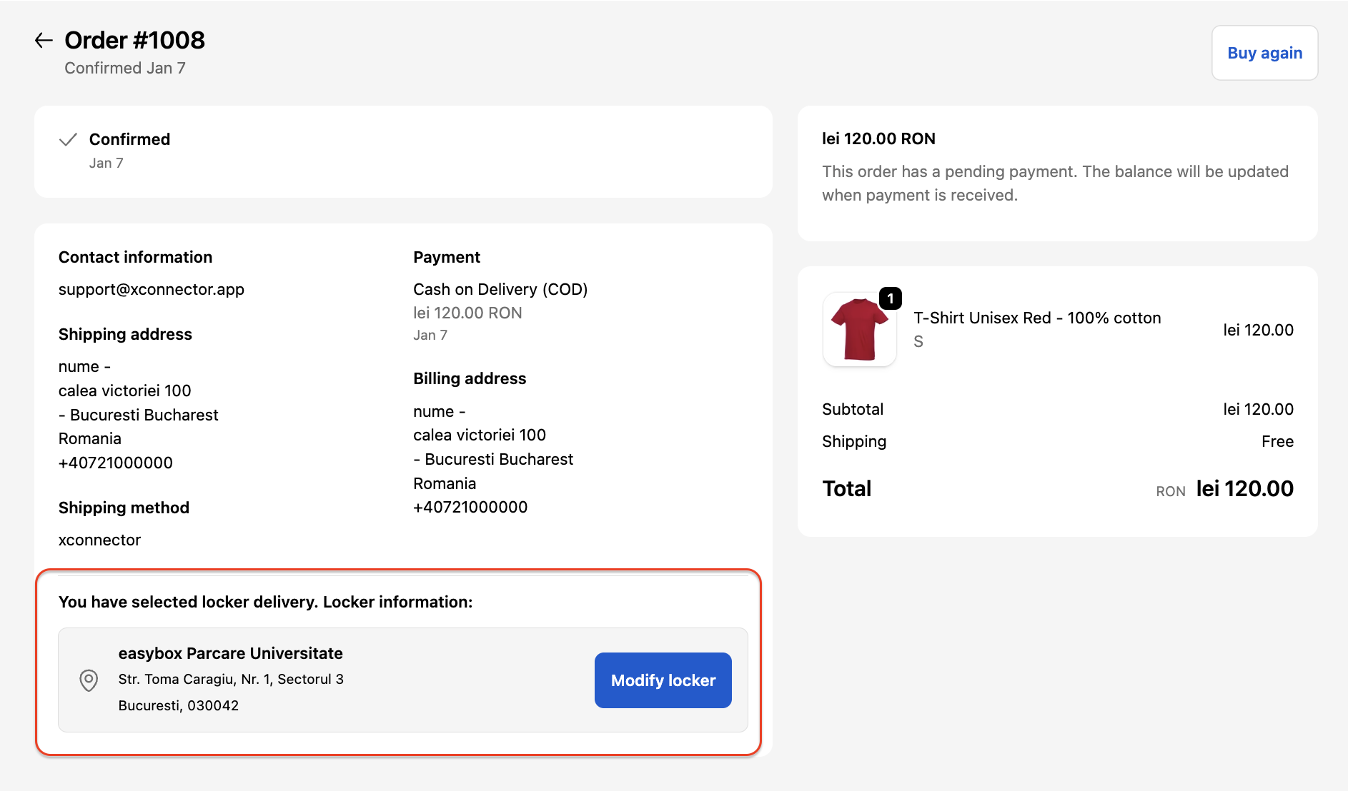 The locker details will be displayed in Shopify → Order details → Additional details and also in xConnector, where the shipping label for locker delivery can be generated.