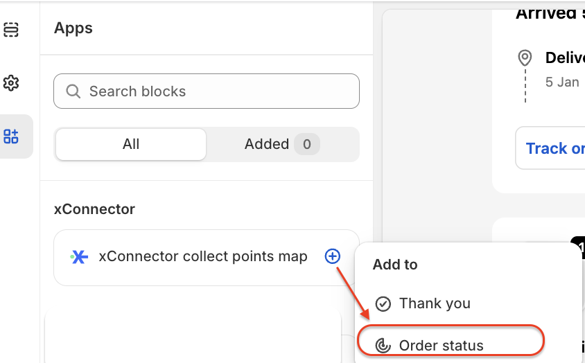 Step 4: Click on the plus sign to add the xConnector extension to Order status