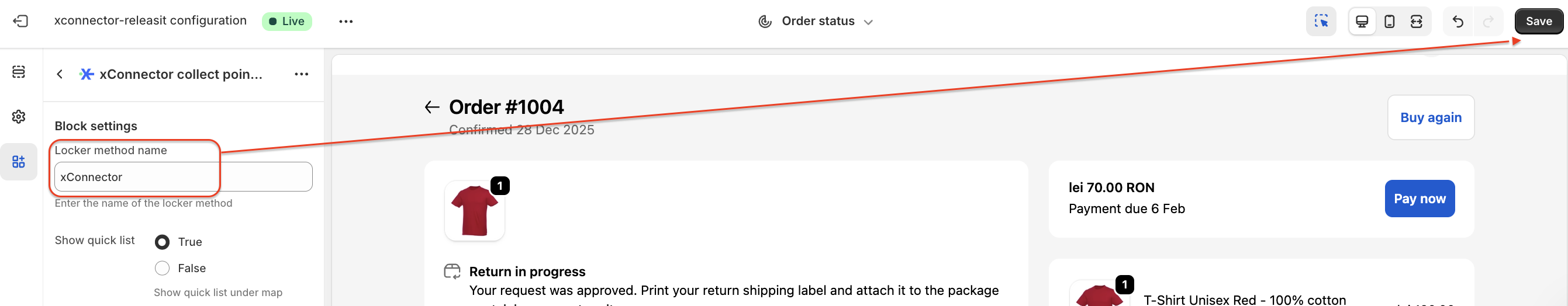 If you also want the locker details to appear on the Order Status page, you can simply add the xConnector extension there.