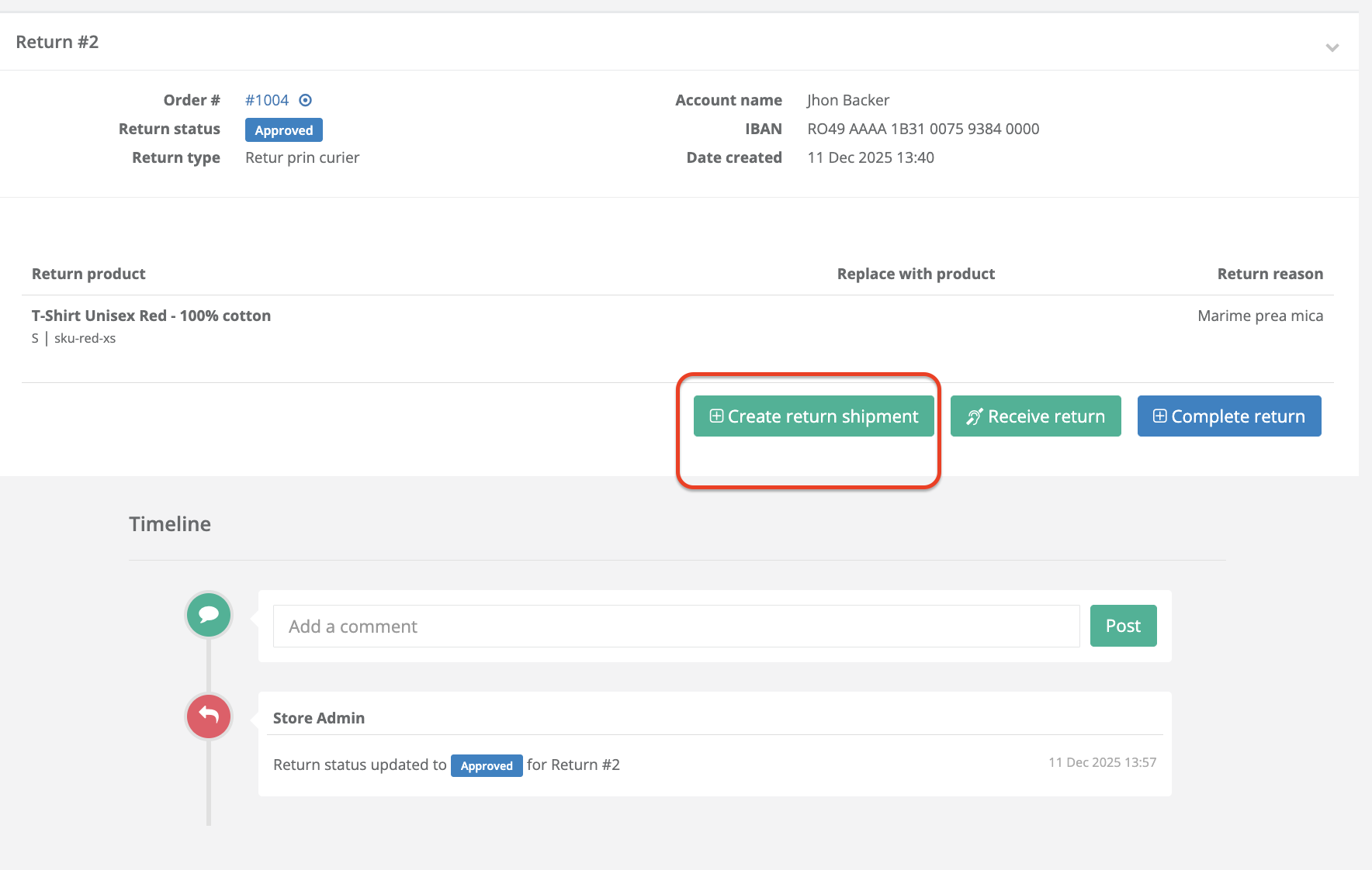 Dupa aprobare, se genereaza awb-urile necesare pentru preluarea coletelor retur.