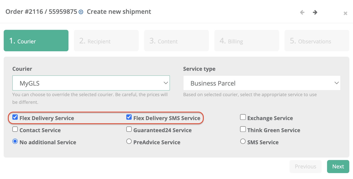 In each Flow - Advanced configuration, GLS services can be configured exactly as in the Shipping generation interface in xConnector