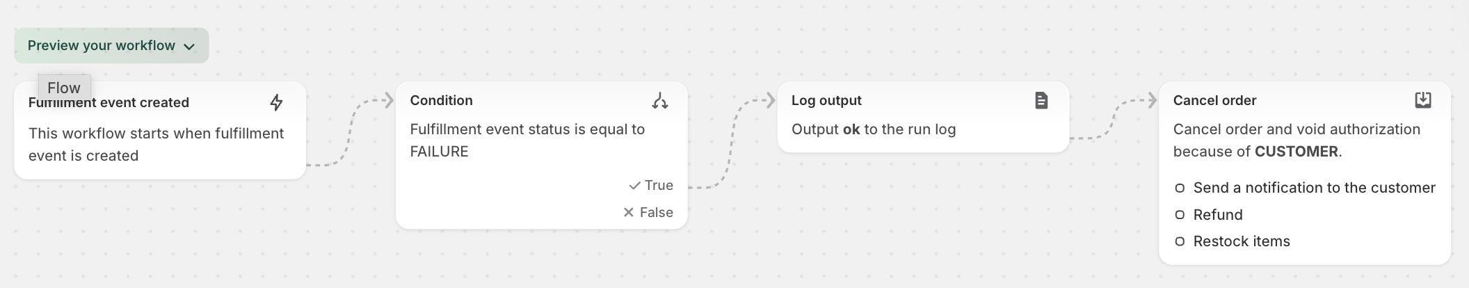 When the tracking status becomes Refused or Returned, an automation flow is triggered that automatically cancels the order.