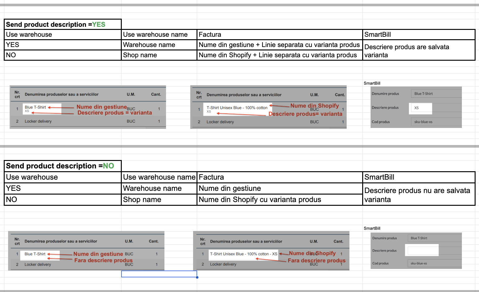 (varianta produsului se salveaza in campul Descriere produs din SmartBill)