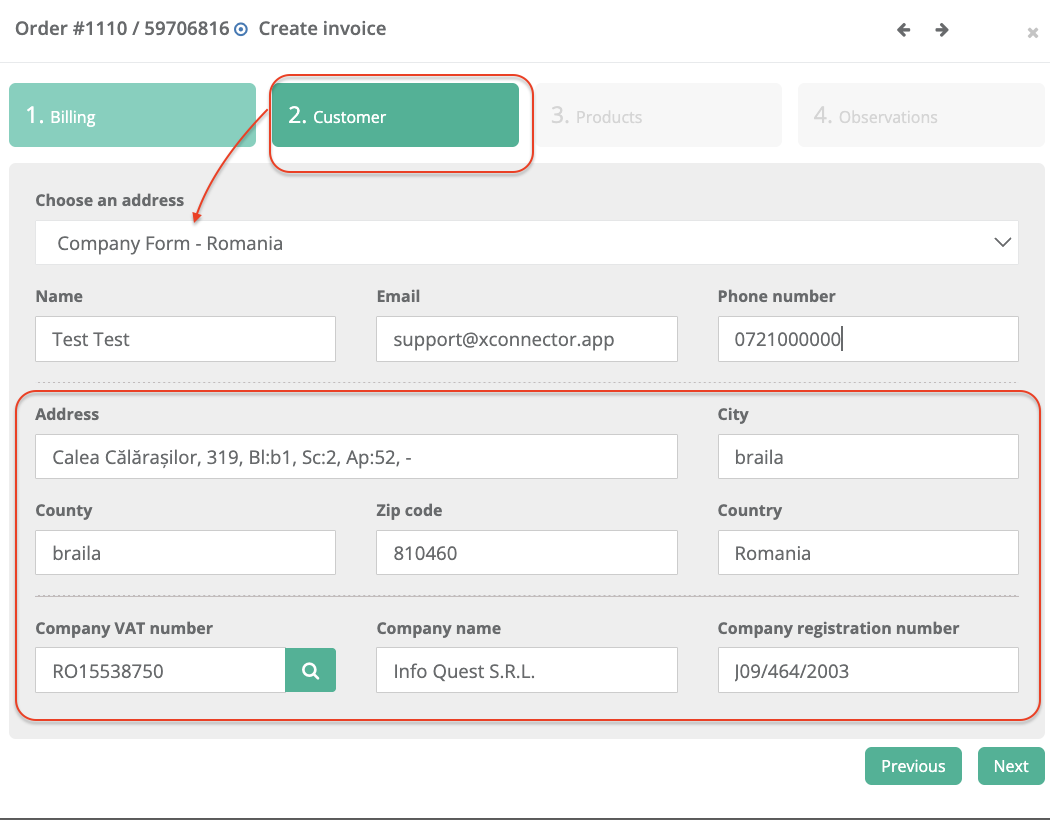 The data from the Company form – Romania app used on the invoice depends on the xConnector workflow, specifically on how you choose to generate the documents.